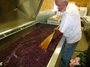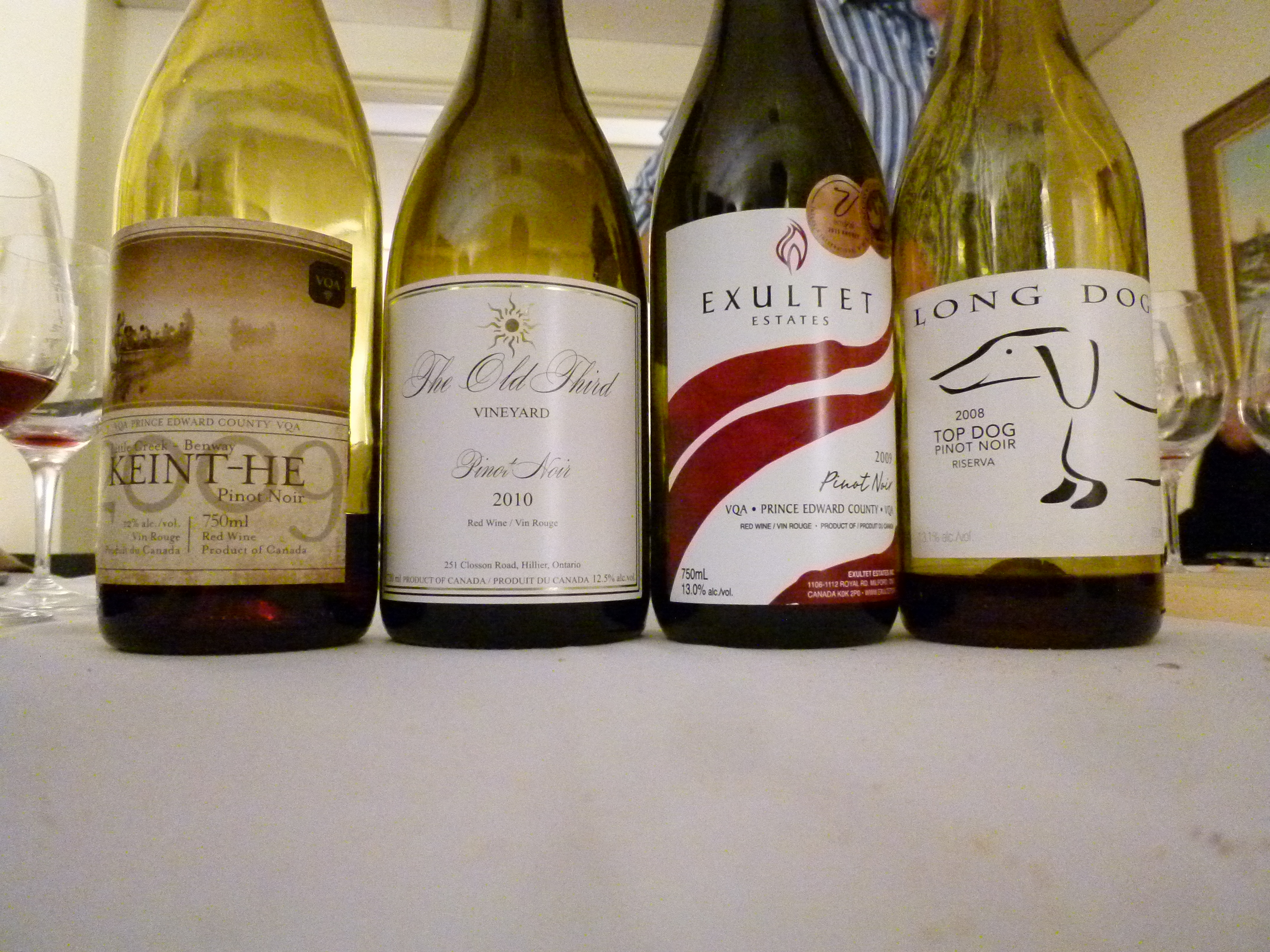 Richard et Liliane ayant rapporté des vins issus du cépage pinot noir lors de leur voyage à Prince Edward County fin septembre, la thématique fut d’aller à la rencontre de ce nouveau terroir près de Picton en Ontario qui possède un sous-sol calcaire analogue à la Bourgogne. Savourez la photo de James Lahti le propriétaire de Longdog en train de remonter sa cuve de PN à l’aide d’une rame, this is a very Canadian experience: