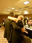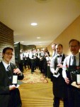 La 12ème édition du MPV 2013 vient de se terminer. Une fois de plus les amateurs de grands crus ont pu se régaler de bouteilles exceptionnelles. Quelques uns de mes coups de coeur personnels vont aux vins suivants: Clos Vougeot 1964, Lafite 1990, Sperss 2001, le Volnay Clos des chênes 1969, le Clos saint Martin 2000, les blancs de la maison Henri Boillot, Meursault 2011, Chassagne les Embrazées 2011, Corton Charlemagne 2011, Puligny-Montrachet Clos de la Mouchère 2011. Sous la houlette de notre excellent Don-Jean Léandri j’ai eu le plaisir de diriger les brigades couvrant l’aile gauche et le centre des séances de dégustation ainsi que la section gauche du dîner de gala, soit 30 sommeliers responsables de 32 tables ou prenaient part 280 convives (la moitié des 560 personnes présentes). N’ayant pas la liste des sommelières sous les yeux et ne voulant pas oublier de noms, je souhaite souligner en bloc votre excellent travail, vous avez été aussi compétentes que gracieuses. Pour la brigade (exclusivement masculine) du dîner de gala sous ma supervision je souligne la contribution et le professionalisme de: Patrick, Giovanni ( tables 1,2,8), Éric & Daniel Lee ( tables 3,6,7), Philippe Utapa et Alexandre Blais ( tables 4,5), Gabriel lamarche & Charles ( tables 9,10,16), Guillaume & Charles Vincent ( tables 11,14,15), Charles et Louis Landry (tables 12,13,20), Jean-Luc& Yves Saint-Laurent ( tables 17&24), Vincent & Maxime ( tables 21& 27), David & Guillaume (tables 18/19), Vincent Ferron & Raphael Léger (tables 22,23), Étienne & Michel ( tables 25, 26), Gabriel Gagnon & Hugo ( tables 28, 29), Mathieu Olivier & Marc Olivier ( tables 30/31), Philippe ( table 32 VIP), Sylvain, régisseur du cellier et des bouteilles. À propos du service (témoignages): « Vous êtes des dieux, le service est parfait, c’est vous qui faites l’événement » Martin Gauthier, Président du Comité organisateur MPV 2013 « Un Sans-faute » Ghyslain Caron, Services Signature SAQ « Service impeccable » Denis Marsan, acheteur de grands crus SAQ « Excellent service du début à la fin » Pierre Beauchesnes (M. Beauchesnes était Président du Comité organisateur en 2010). etc. Opinion de Richard: Sommes nous des dieux? non, certainement pas, mais la coordination d’ensemble fut remarquable cette année, meilleure que les éditions précédentes. En 2014, pour sûr, on fera encore mieux. Félicitations aussi à Jean-Yves (Bernard) qui coordonne les températures de service, le carafage et le conditionnement des bouteilles. Excellent travail année après année Jean-Yves. In Vino Veritas! R