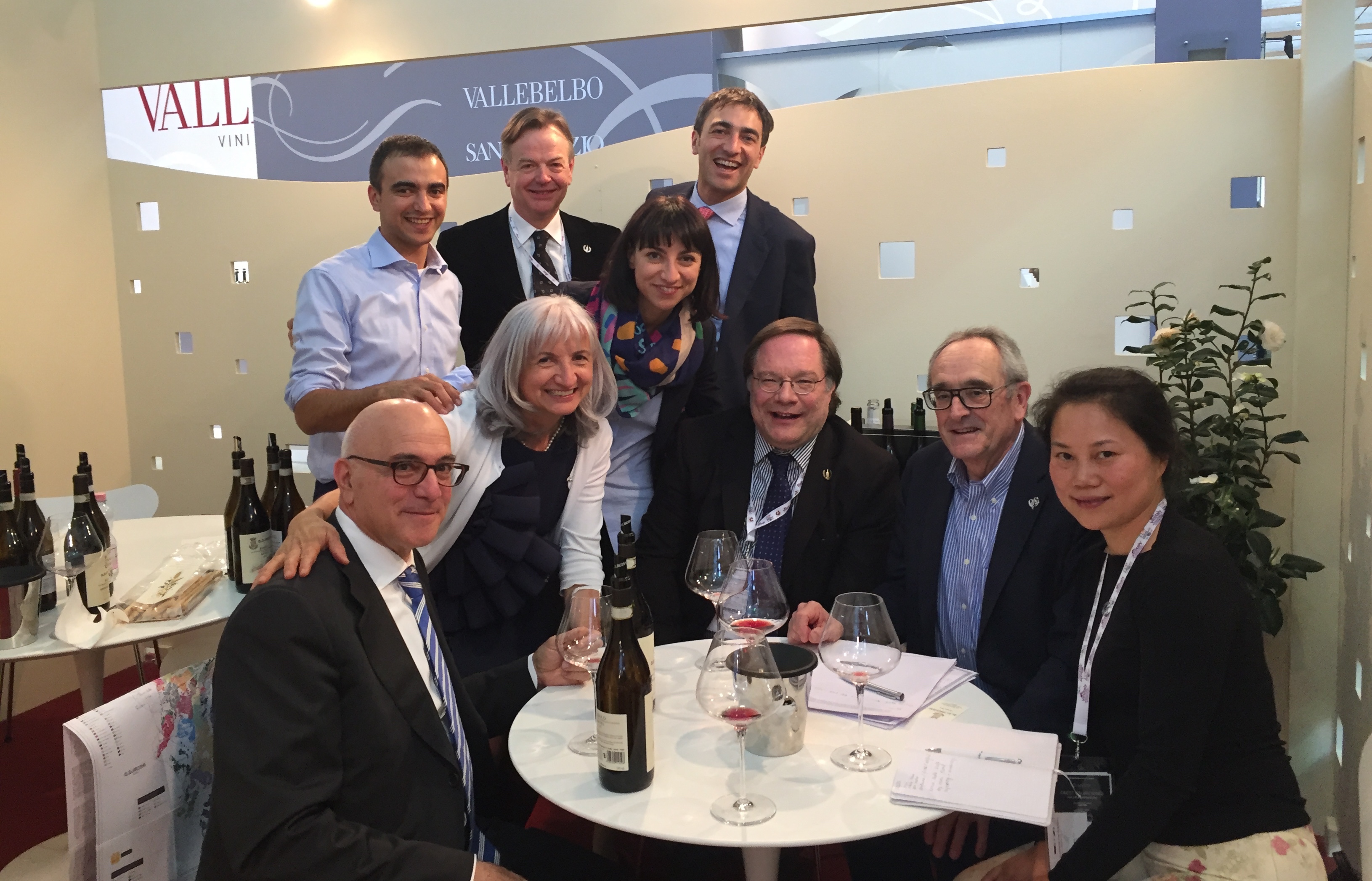 Au premier plan (dans le sens horaire) assis: M. Aldo Vara et Mme Vajra, sa fille Francesca, Dr Ian D’agata, M. Jean-claude Berrouet et Lin Liu; au deuxième plan: Isidoro Vajra, Richard Sagala, Giuseppe Vajra.