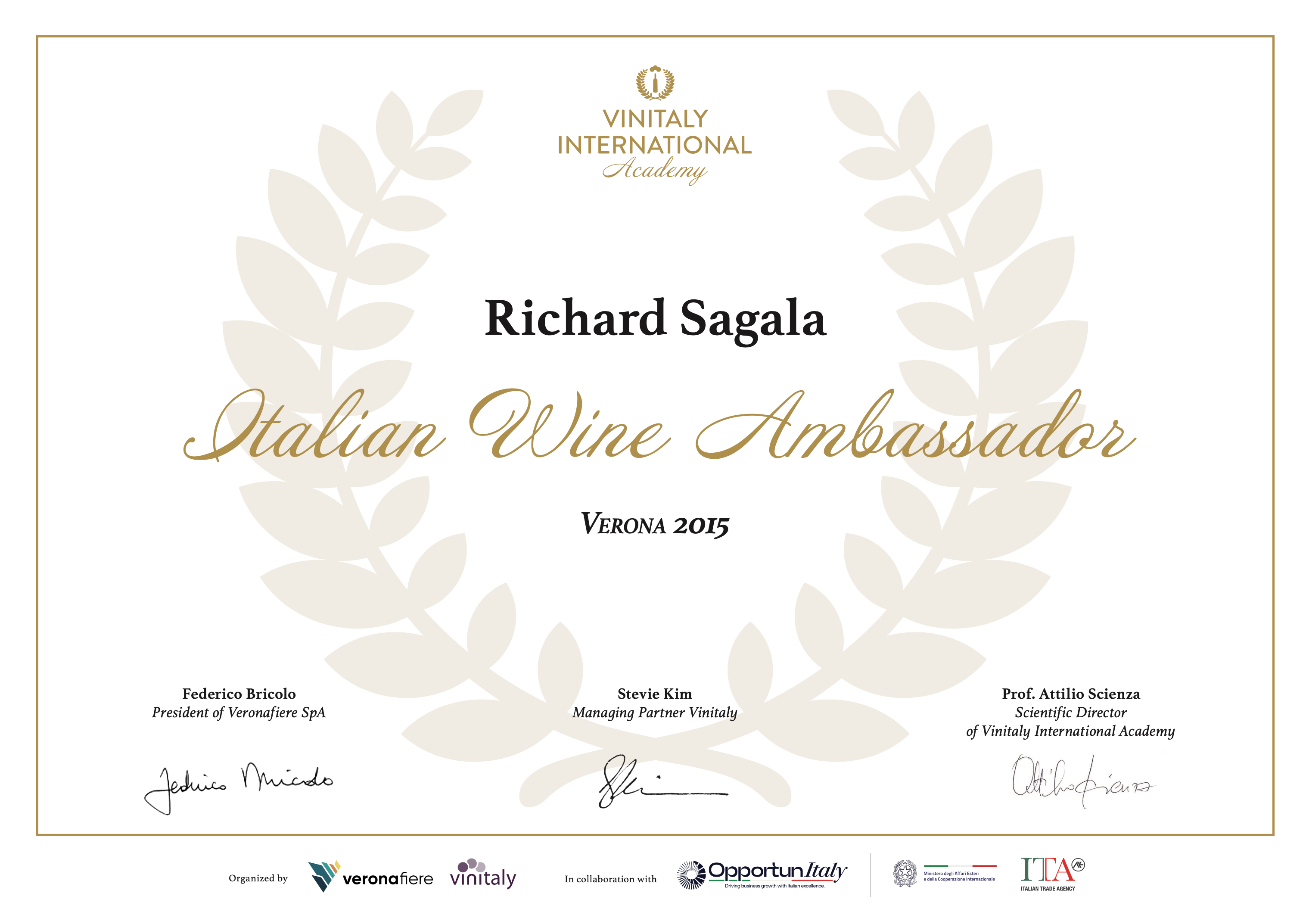 In 2015, I became an Ambassador for Italian wines in the first cohort of the (then) new wine program delivered at the Vinitaly International Academy .